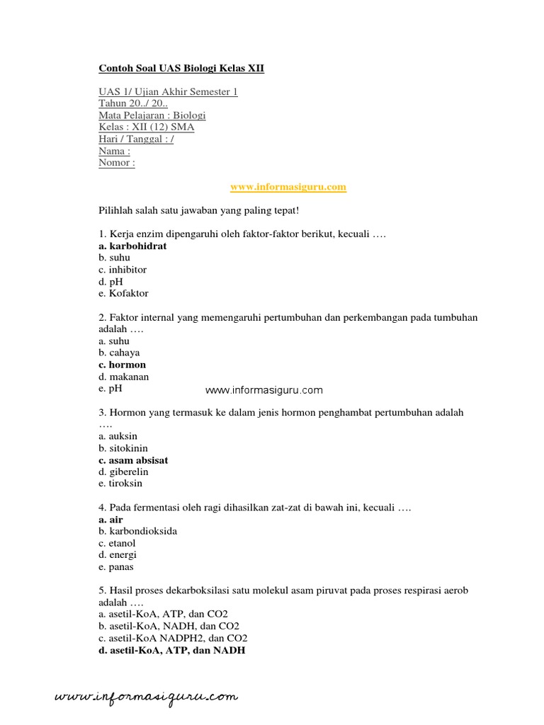 10 Contoh Soal Uts Sejarah Beserta Essay Dan Pembahasannya Lengkap. Langsung aja dilihat contoh soal-soal nya Contoh soal Ujian Akhir Sekolah UAS untuk mata pelajaran Biologi kelas XII SMA. 2 Peradangan nefron karena bakteri streptococcus.